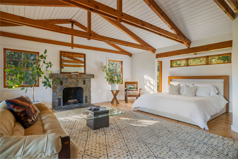 Nestled in the heart of Topanga, this stunning craftsman-style home is a dream oasis in the canyon situated on a sprawling 1/2 acre lot. The home seamlessly combines the warmth of redwood and the elegance of glass, welcoming you into the best of canyon living. As you step through the entryway into the living room, you see a space that is flooded with natural light and framed by the elegant beamed ceilings and classic brick fireplace. Host unforgettable dinner parties while cooking in the gourmet kitchen and chatting with your guests in the dining room with a wood-burning stove that emanates warmth and ambiance. Enjoy breathtaking canyon views from the sunroom that features a built in reading nook. A custom staircase leads you to the second floor, where an entire romantic primary retreat awaits. This level features a unique stone fireplace, soaring beamed ceilings and its own incredible views. Unwind in the lavish bathroom before stepping onto the private balcony that offers panoramic canyon vistas. Then head outside to a luxurious pool and outdoor dining area with built-in BBQ and