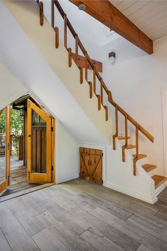 kitchenette area, perfect for entertaining friends and family. An outdoor shower provides an unforgettable canyon experience. For those seeking a dedicated workspace or a serene place for yoga and meditation, the detached studio is the perfect space. Surrounded by mature trees and fully gated, this property provides an exquisite private retreat.